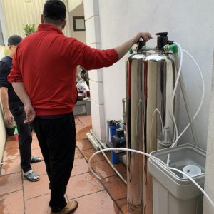 *Đổ vật liệu chuyên dụng cation vào cột lọc nước giếng khoan, cột lọc nước đầu nguồn.